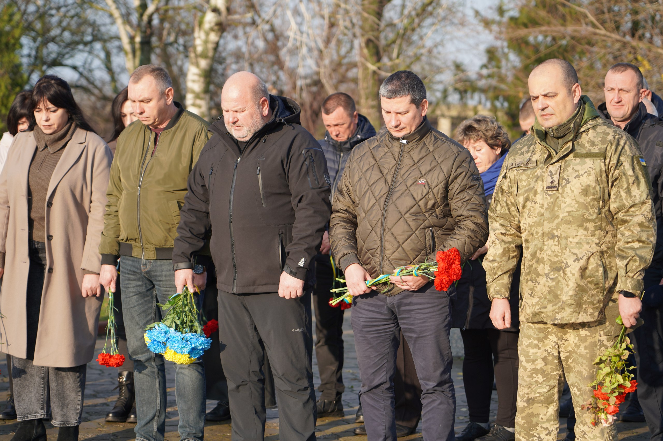 На Пагорбі Слави зібралися представники місцевої влади, військові та небайдужі жителі Баштанської громади. Учасники заходу поклали квіти до пам’ятного знаку Героїв Небесної Сотні та схилили голови у хвилині мовчання, вшановуючи всіх, хто віддав життя за свободу й незалежність України.