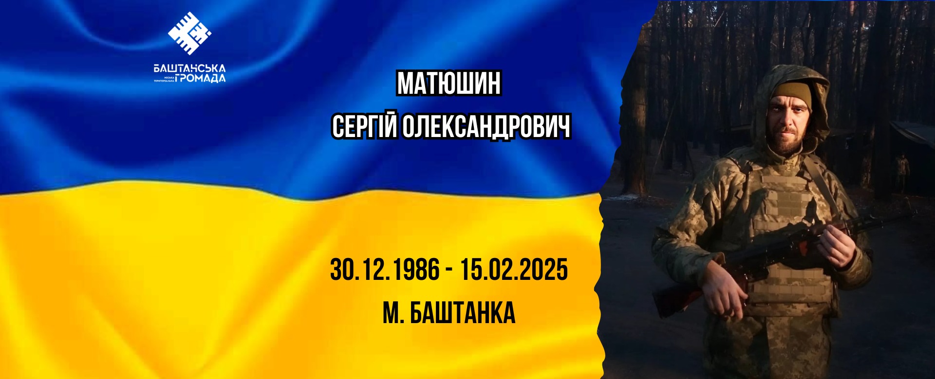 15 лютого 2025 року Баштанська громада знову зазнала тяжкої та непоправної втрати. У боротьбі з російським агресором, захищаючи незалежність, свободу та територіальну цілісність України, загинув наш земляк — Матюшин Сергій Олександрович.